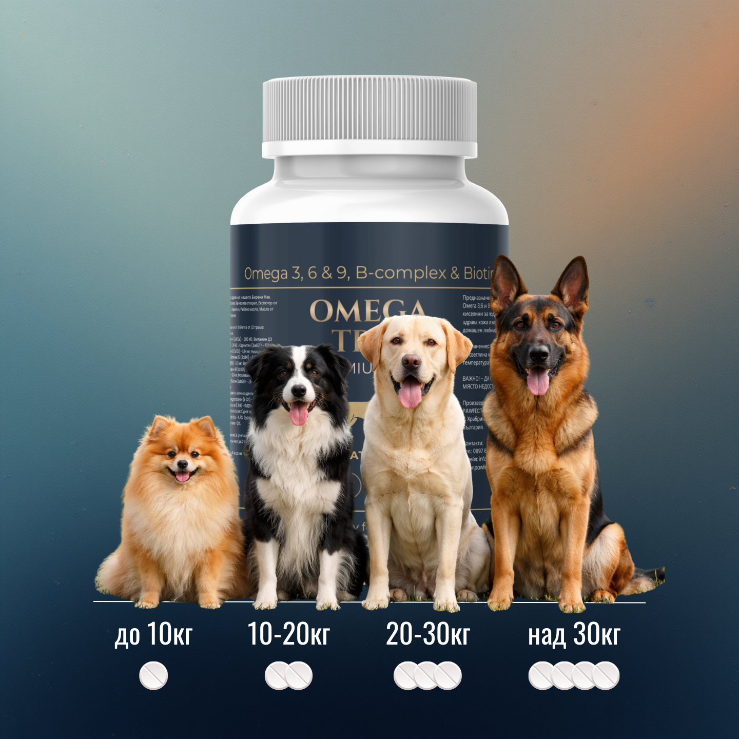 Омега 6 и 9 поддържат еластичността, предотвратяват лющенето и спира чесането, а козината става мека и лъскава